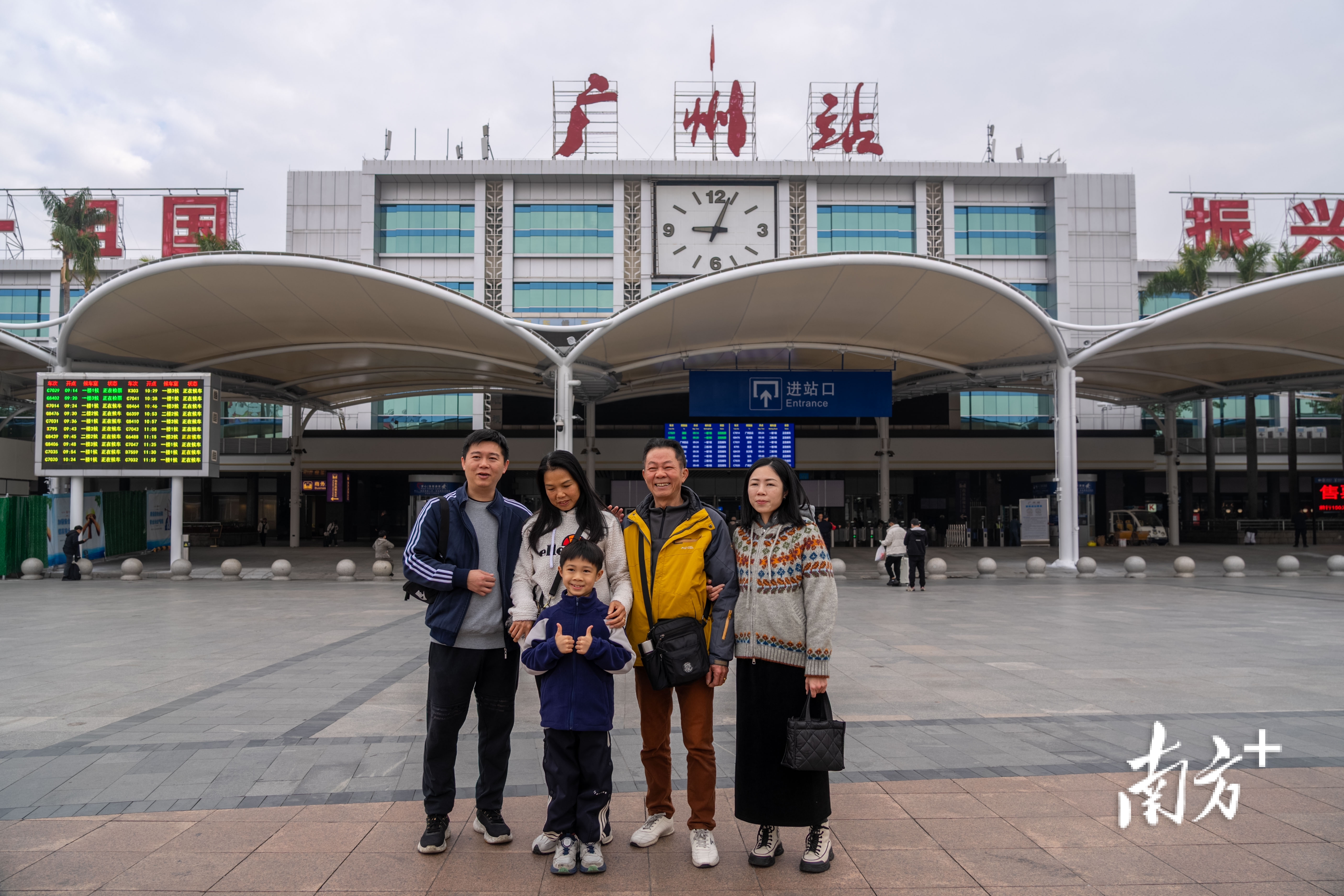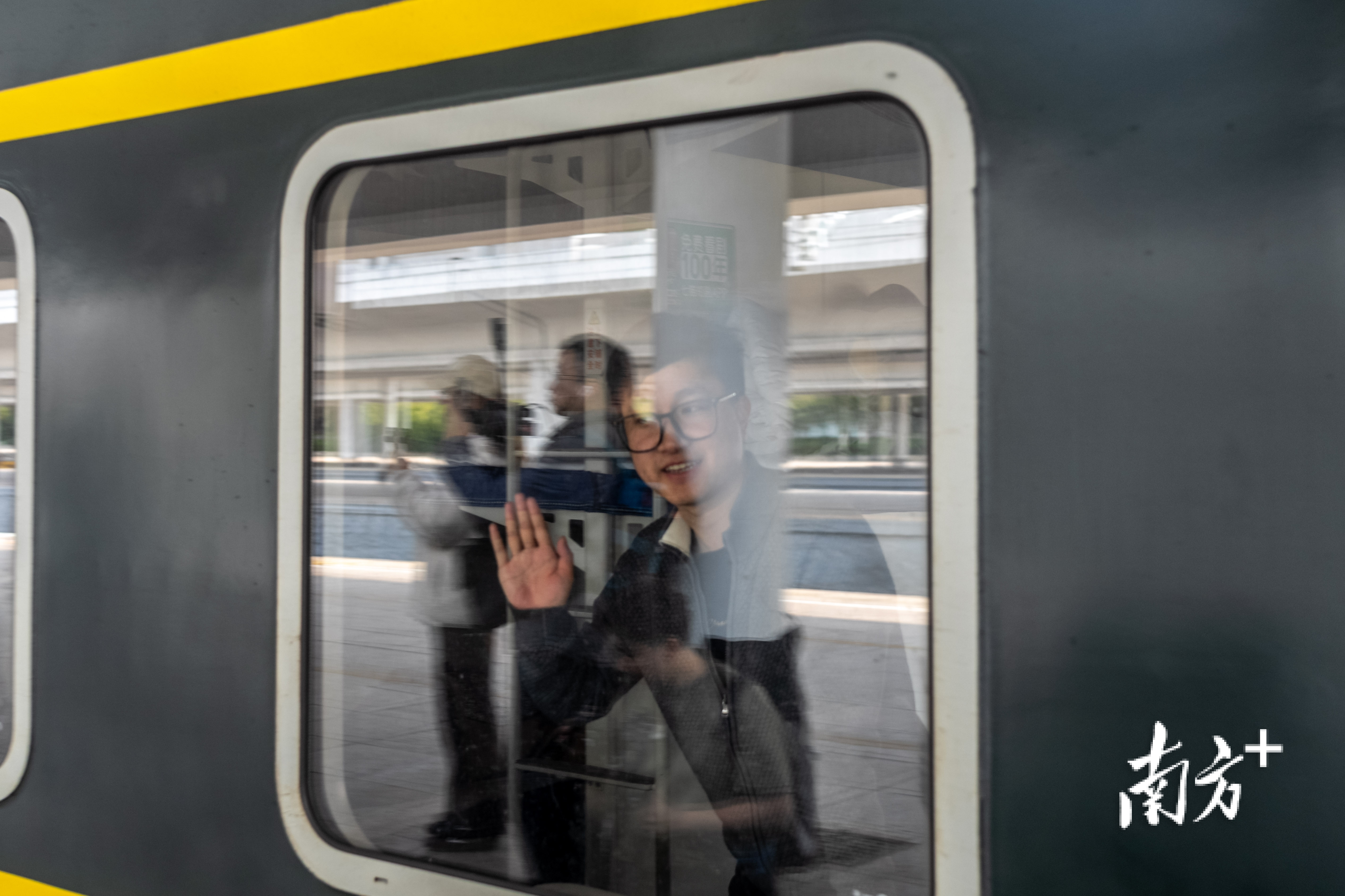 易先生(黄衣)一家专门来搭乘最后一趟广州站始发的绿皮车。