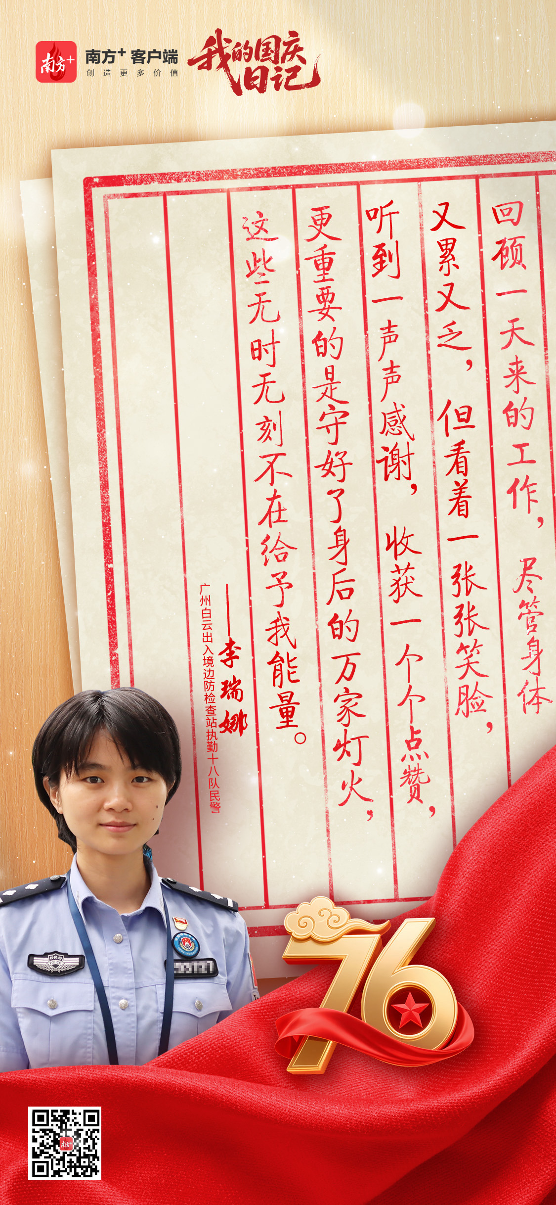 编者按:国庆中秋假期对大多数人来说,是外出游玩的轻松时刻。但有这样一群人,他们选择在岗位上默默坚守,以实际行动诠释着责任与担当,向祖国深情告白。正值“双节”,南方日报、南方+推出“我的国庆日记”系列报道,讲述“守护者们”是如何在自己的岗位上“过”节的。