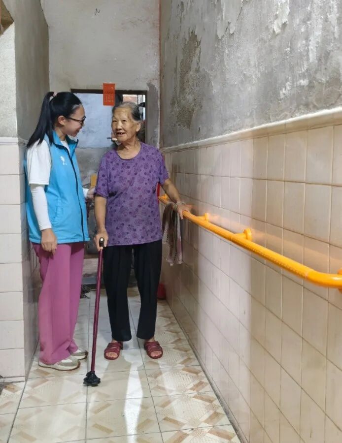 湖美村的黄婆婆也是此次改造的受益者。改造不仅优化了厕所环境,将家中蹲厕改为安全坐厕,贴装防滑地板砖并加装扶手;还全面整治了房屋安全隐患,更换了老化电线,在厨房新增安全插座以满足做饭用电需求,同时修补了开裂墙面。此外,走廊及家中两个出入口也均加装了扶手,为黄婆婆打造了“全场景安全防护”。