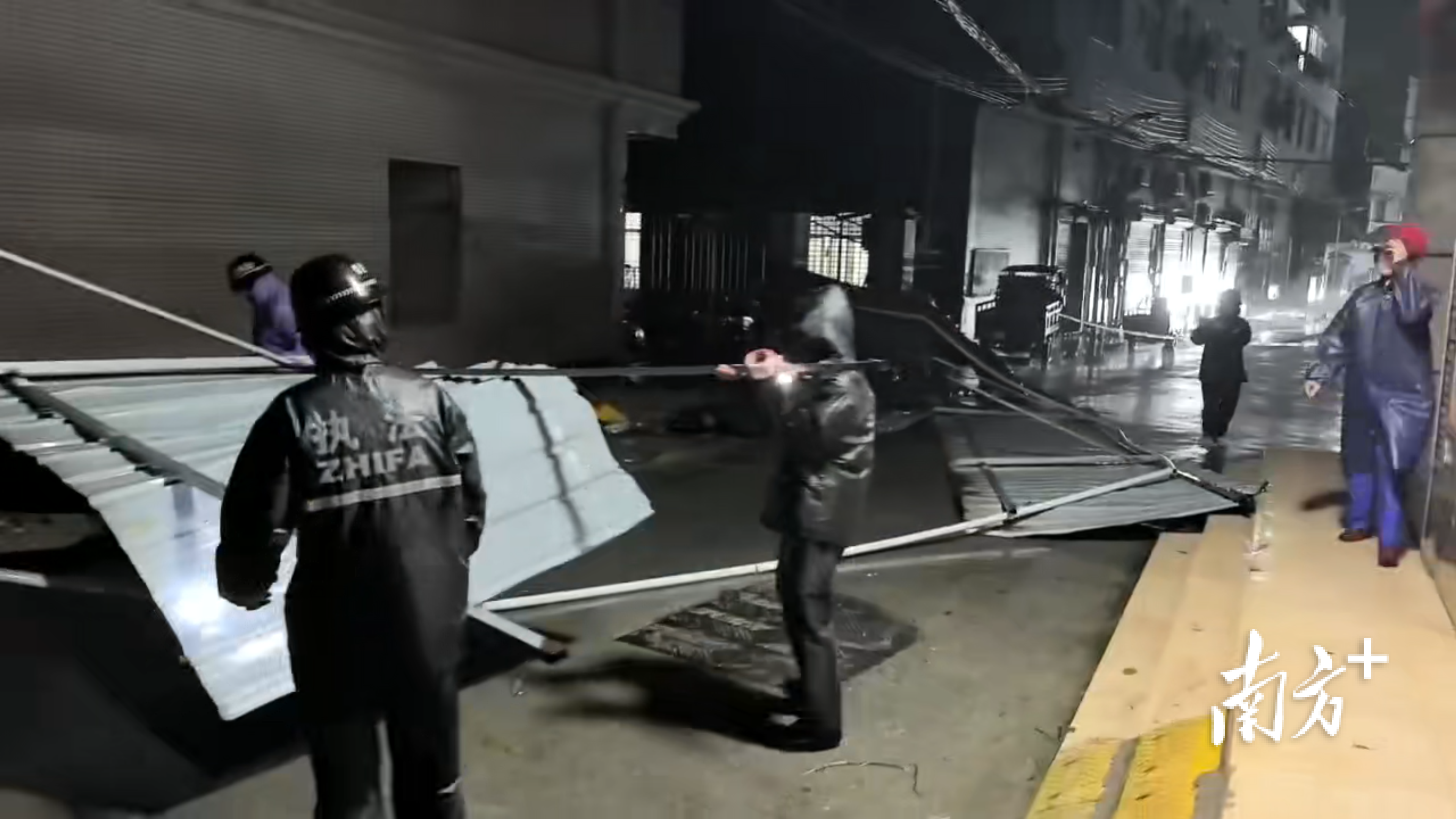 台风“桦加沙”过境茂名,吹翻铁皮杂物。