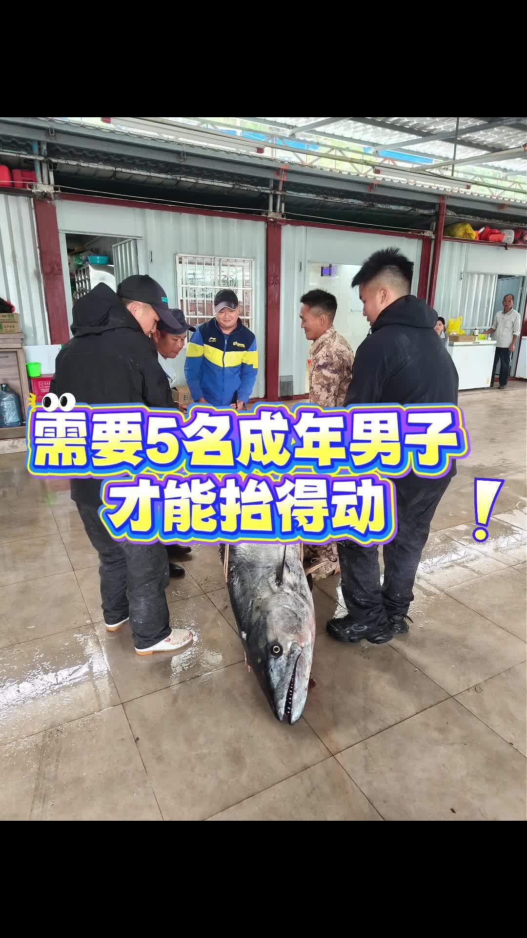 据悉,这是该海域10年来捕获的最大中华马鲛鱼,需要5名成年男子才能抬动。