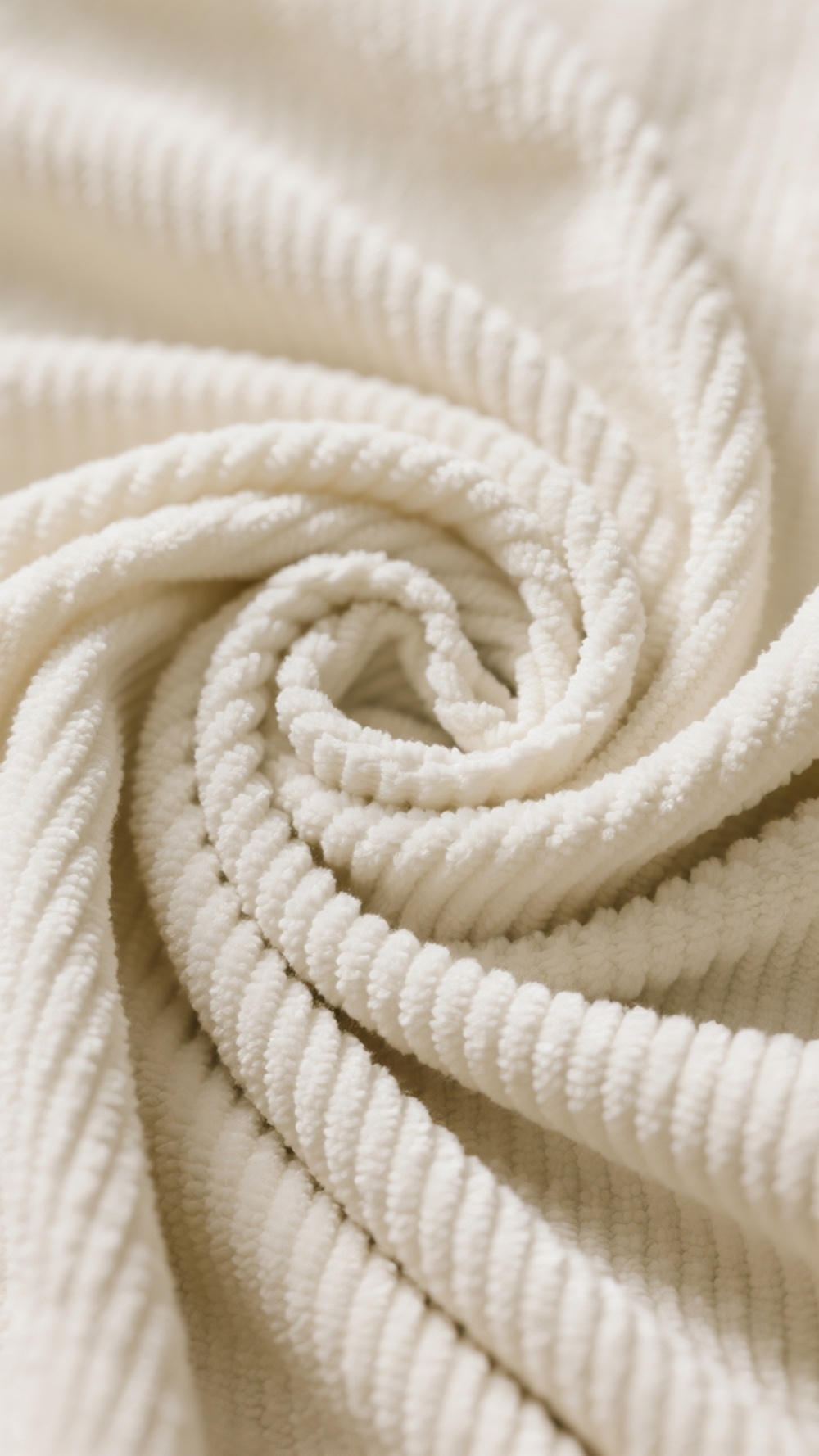 灯芯绒:灯芯绒面料经割纬起绒,表面形成一条条灯芯状,故称为灯芯绒。具有手感柔滑,有弹性,绒条清晰丰满,光照柔和、均匀等优点,但领口、袖口及肘关节、膝关节等部位长期摩擦,绒毛容易脱落。常用于秋冬服装、鞋帽面料、玩具、沙发面料、窗帘等。