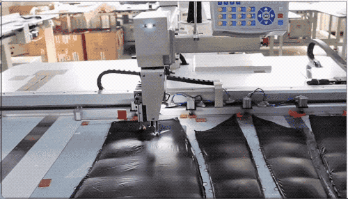 用数控机床缝制波浪形绗缝丨Youtube/Elaine Zhao