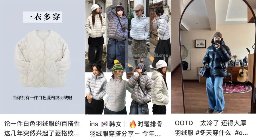 羽绒服的选购重点轮流转,早些年是版型,近些年是充绒量,最近轮到格子形状了,菱形格、大方格、大横条、小横条、花式格都有各自的支持者。