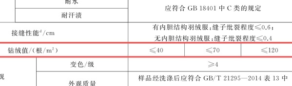 让人安心(或者很不安心)的是,哪怕羽绒服做得再好,钻绒都无可避免。羽绒服国标甚至允许被认定为优等品的羽绒服,在装有硅胶异形球的回转箱里翻滚一定时间后钻出少量羽绒。