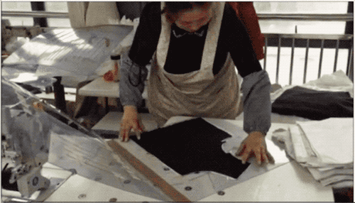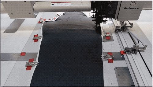 先对齐面料和里料,盖上划好绗缝线的模板再缝纫丨Youtube/Suzhou Qianteng Garments Co., Ltd.