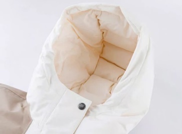 一种是“遮盖式”,相当于在做好的羽绒服外面再缝一层面料。这种羽绒服,就算钻绒了你也揪不到!