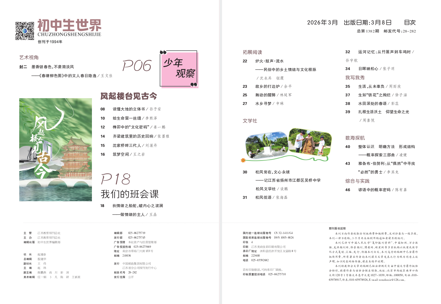 《初中生世界》由江苏省教育厅主管,是面向初中生的综合性期刊,其拓展阅读栏目选稿严谨,注重文学性与思想性的统一,旨在提升学生的语文素养与审美能力。此次入选,既是对作品文学品质的充分肯定,也体现出其内容贴近青少年认知、兼具文化浸润与育人价值的鲜明特点。