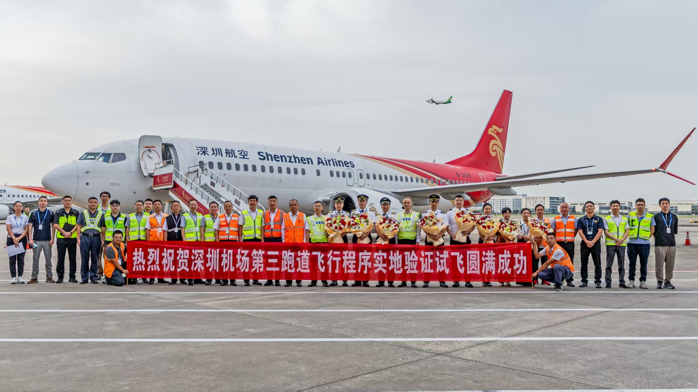 8月26日,正值深圳经济特区建立45周年之际,深圳宝安国际机场三跑道真机试飞工作顺利完成。当天清晨,深圳航空一架波音B737飞机完成全部验证科目后平稳降落,为三跑道后续行业验收及年内投用奠定基础。