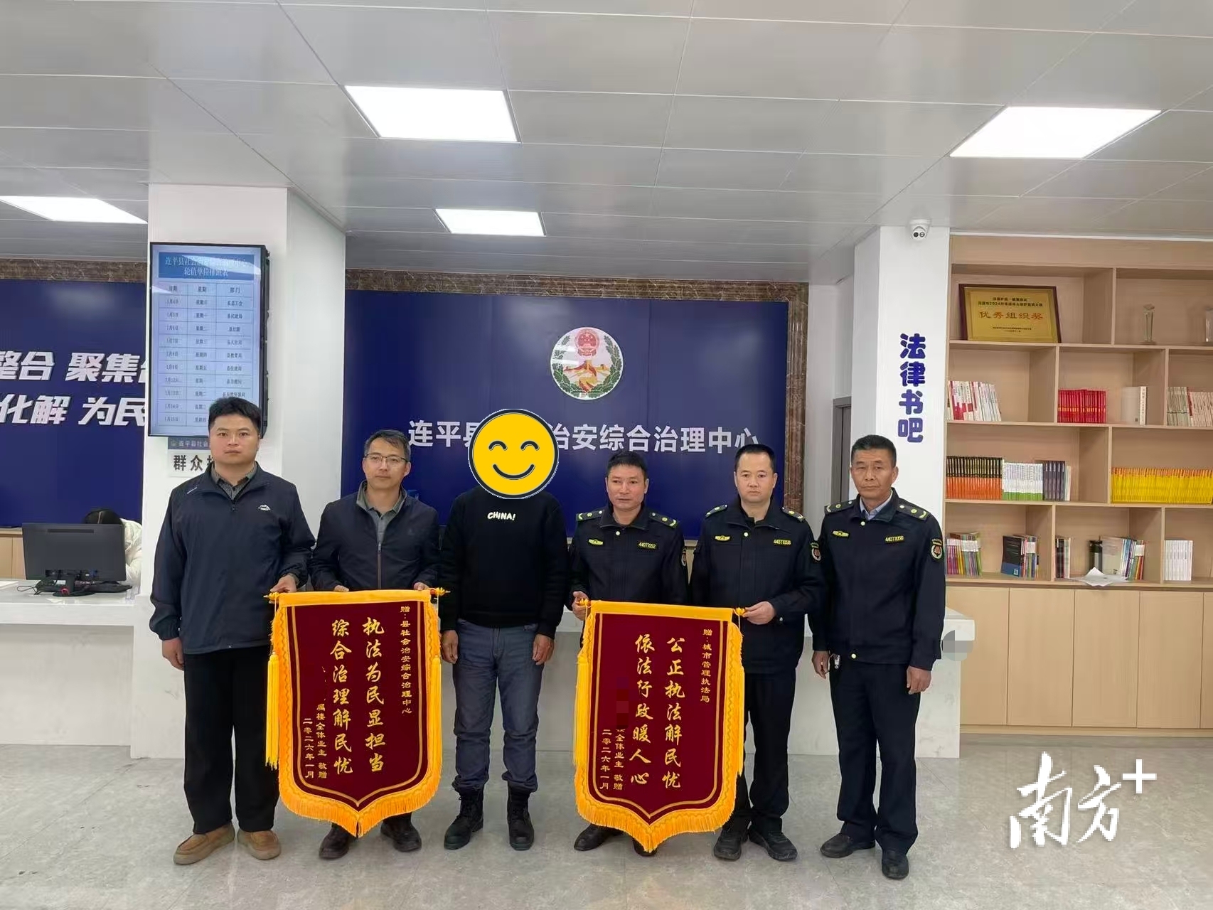 连平县赖先生向连平县社会治安综合治理中心送上锦旗。