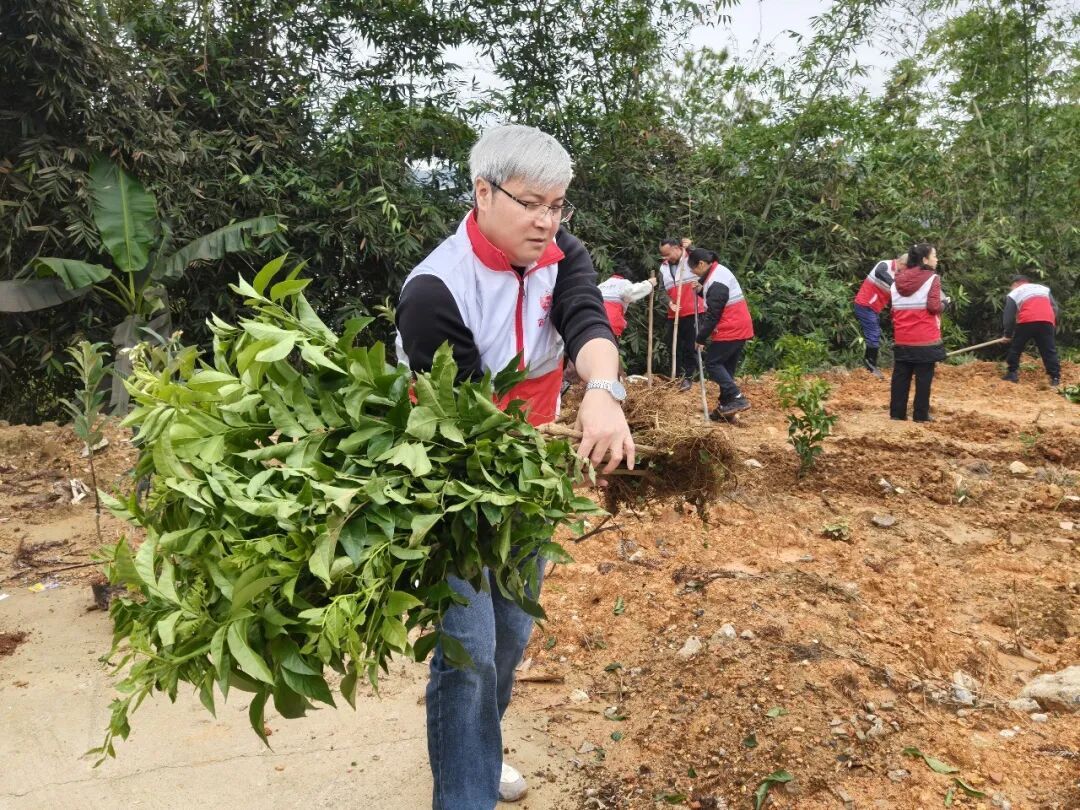 春风吹拂处,新绿绽枝头。政协委员和领导干部扶苗培土、热情高涨,干劲十足,大家或两人一组,或三五成群,有的卖力挖坑,有的扶正树苗,有的挥锹培土,有的提桶浇水,有的运送树苗,个个争先恐后,一片热火朝天。经过一个多小时的紧张忙碌,一株株新栽种的苗木整齐扎根、迎风挺立,为田心村勾勒出一片盎然新绿,也为乡村生态画卷再添浓墨重彩的一笔。