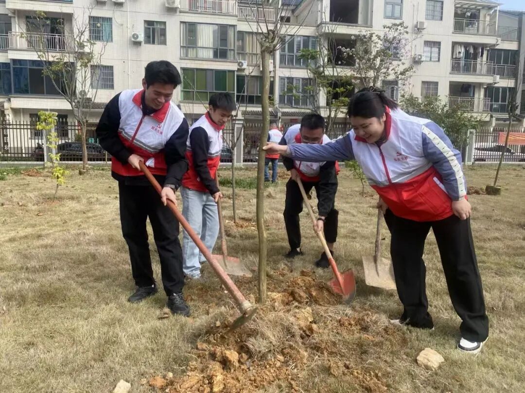 活动现场春意盎然、干劲十足,党员干部们热情饱满、分工明确,有的挥锹挖坑、有的扶苗校准、有的填土夯实、有的拎桶浇水,大家分工协作、默契配合,处处是忙碌的植树身影。从挖坑定植到浇灌养护,每一个环节都严谨细致、规范到位,充分展现了基层干部担当实干的精神风貌。在众人协作下,310株金灿灿的黄花风铃木错落有致、迎风挺立,嫩苗在春日里焕发生机,不仅扮靓了乡村生态颜值,更让“绿水青山就是金山银山”的绿色发展理念在亲手劳作中深入人心、落地生根。