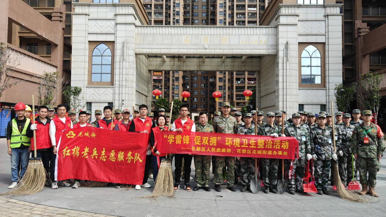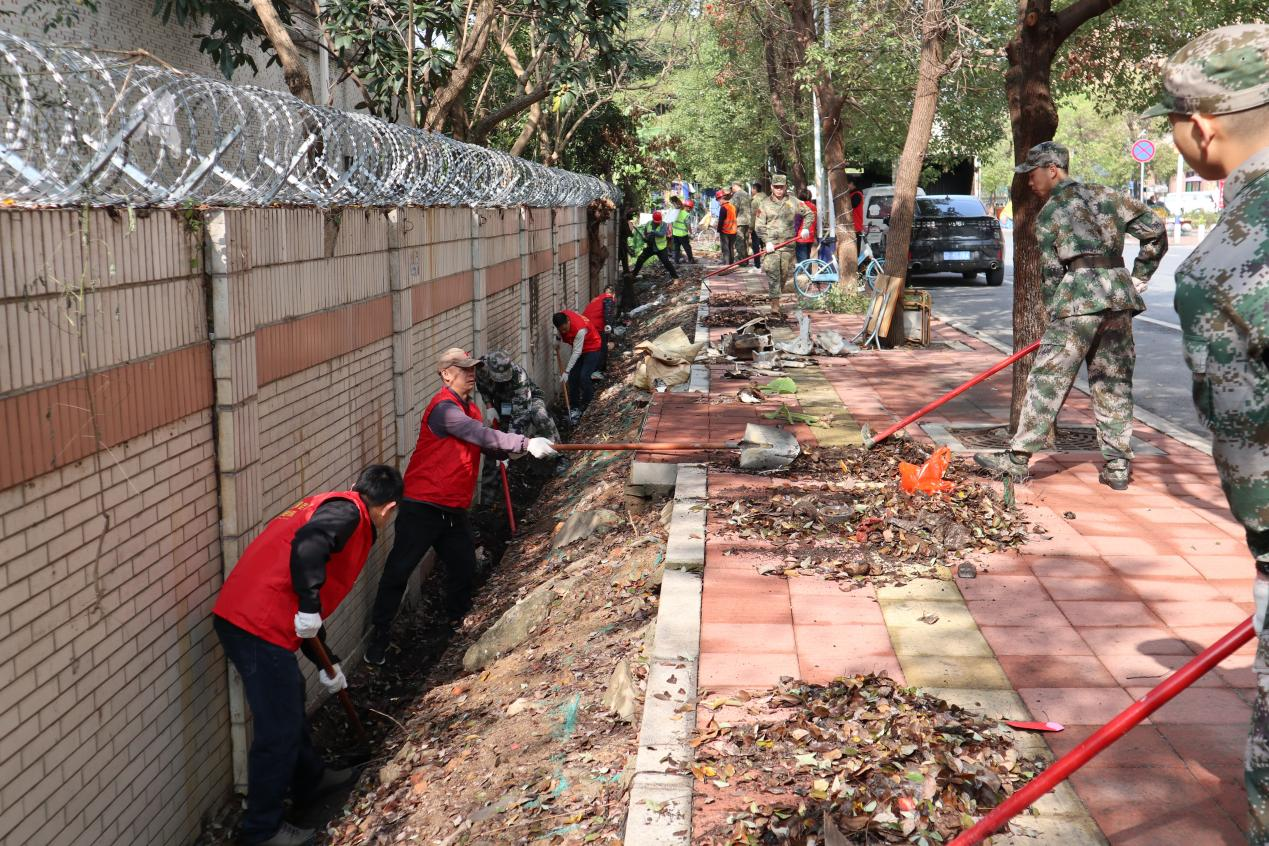 阳春三月春光好。为大力弘扬无私奉献、助人为乐的雷锋精神,进一步巩固和发展“同呼吸、共命运、心连心”的新型军政军民关系,近日,广州市花都区花城街积极响应区人武部和区退役军人事务局的工作部署,联合区人武部组织开展了“学雷锋 促双拥”环境卫生集中整治活动,对区人武部周边、石岗村正能量苑、感恩苑、团结苑三个居民小区进行环境整洁,以实际行动践行全心全意为人民服务的宗旨。