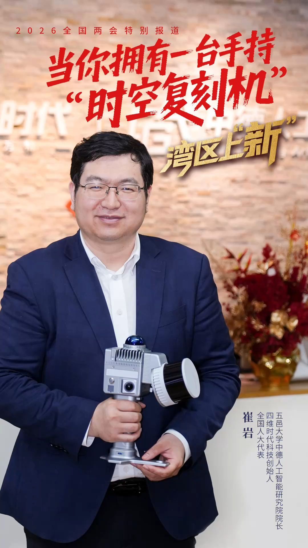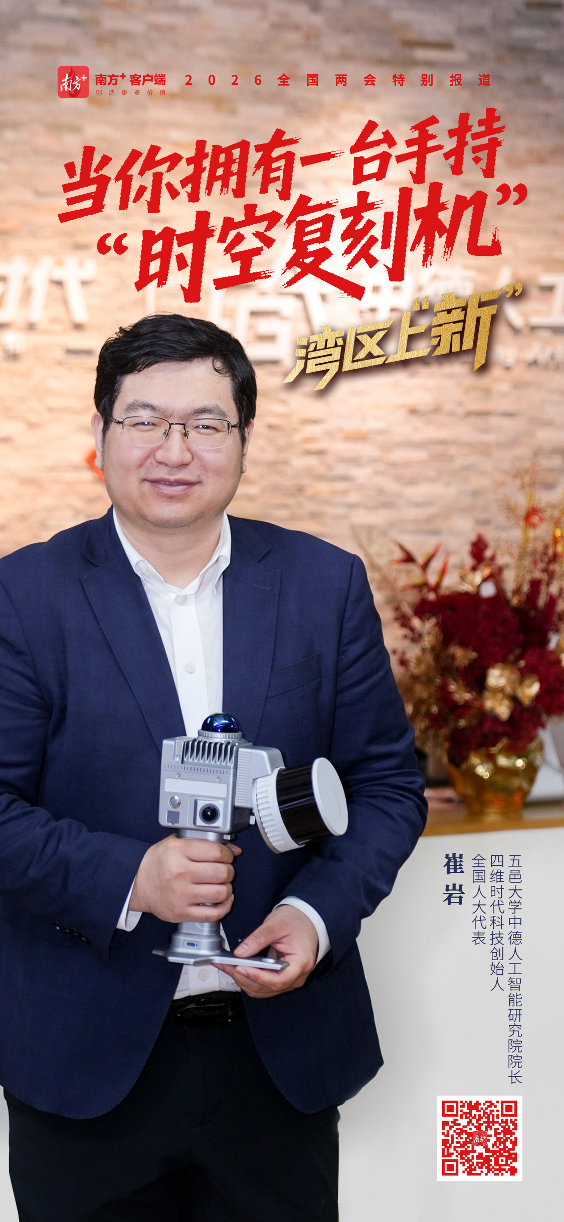 全国人大代表、四维时代科技创始人、五邑大学中德人工智能研究院院长崔岩,正是创造这个“数字世界”的人。今年全国两会,他把这台“时空复刻机”带到了会场。