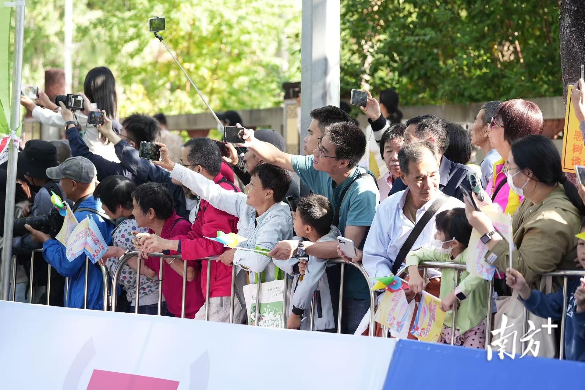 市民呐喊加油。 南方+ 杨兴乐 拍摄