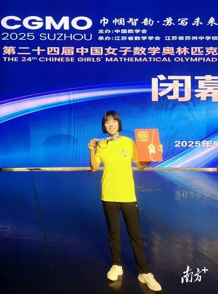 南海区石门中学学生梁妙琦在第24届中国女子数学奥林匹克竞赛中勇夺金牌。
