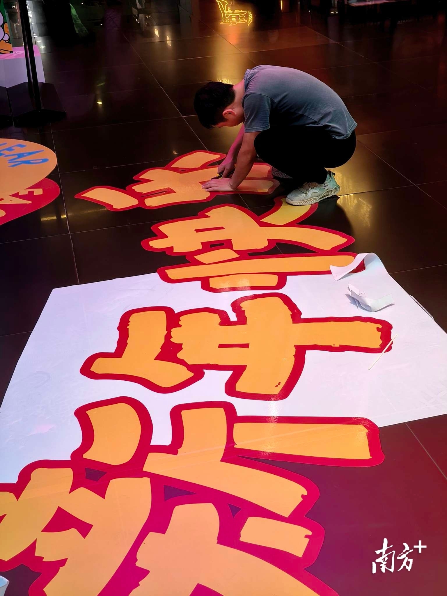 12月30日,广州天河商圈的时尚天河广场入口,迎新年氛围布置进行中。南方+拍客 林伟斌 摄