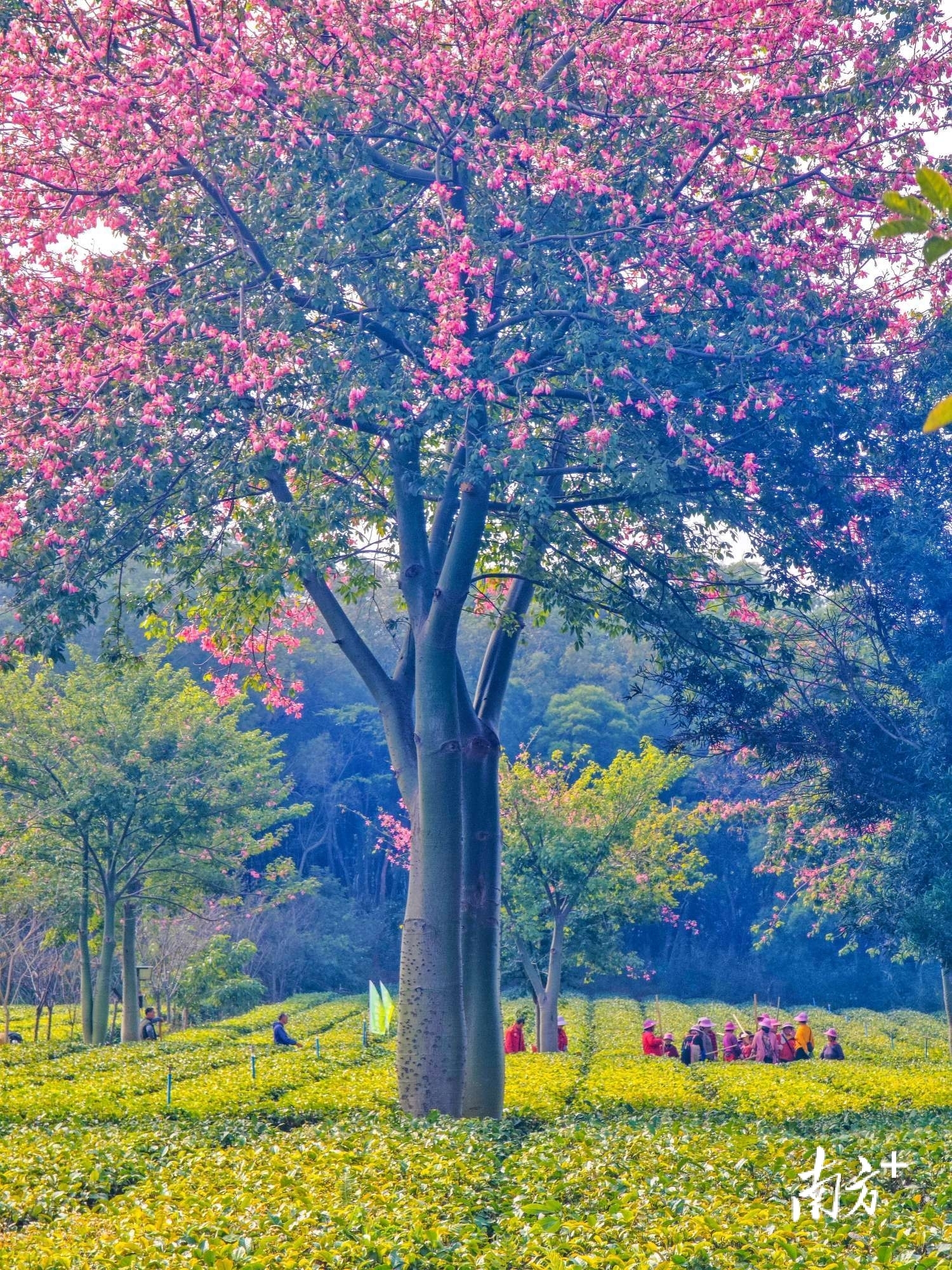 12月30日,英德市英红镇,一茶园的异木棉花盛开。南方+拍客 徐慧敏 摄