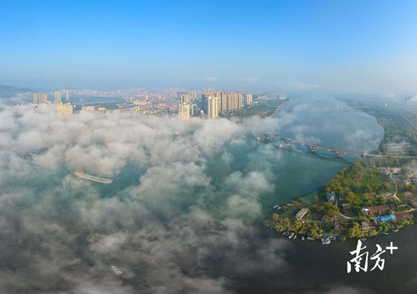 12月29日,英德市区,晨雾中的北江。南方+拍客 徐慧敏 摄