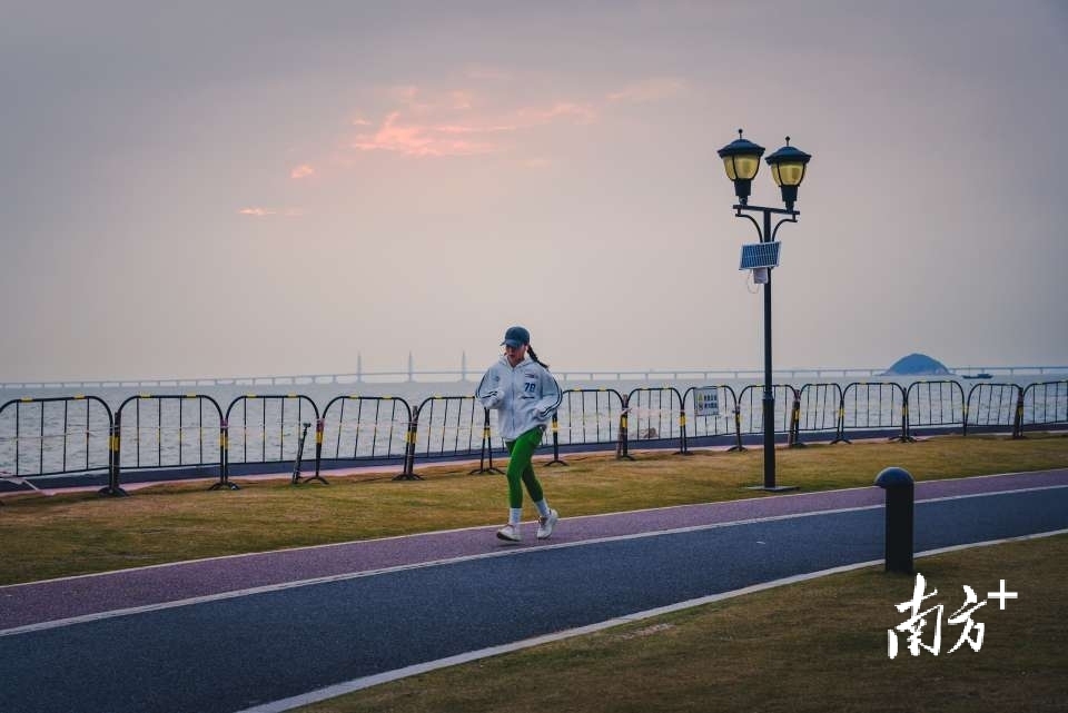 12月31日,珠海野狸岛,迎着朝阳跑步的市民。南方+拍客 袁劲戟 摄