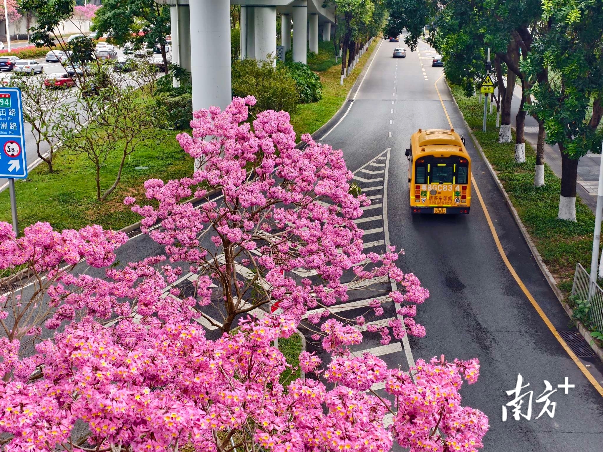 12月31日,深圳北环路,紫花风铃木盛开。南方+拍客 梁宏斐 摄