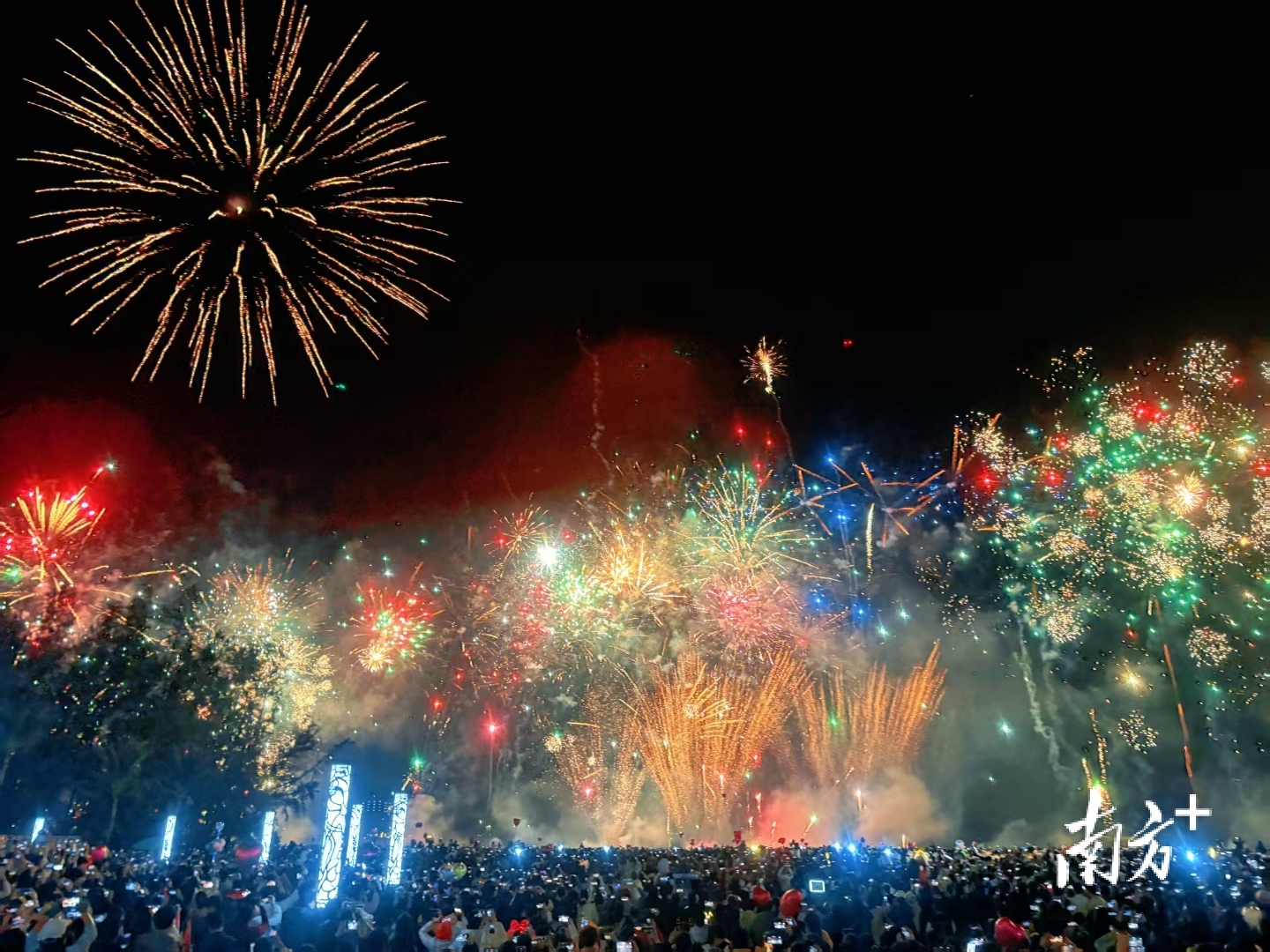 2025年12月31日晚,阳江海陵岛跨年烟花吸引众多游客。南方+拍客 关巧明 摄