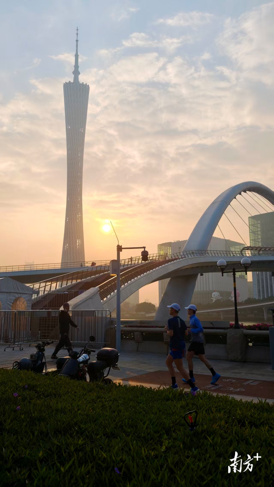 2026年1月1日,广州海心沙第一缕阳光!市民迎着朝阳跑步。南方+拍客 郭广新 摄