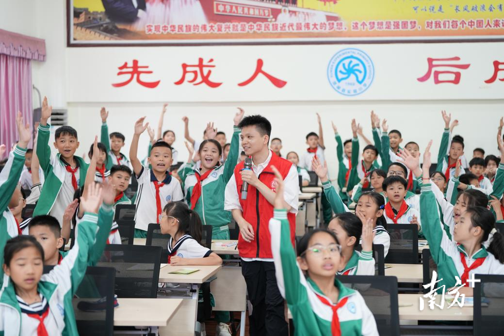 活动现场气氛热烈、趣味十足。气象工作人员身着志愿马甲,手持话筒与孩子们亲切互动,通过趣味动画播放、实景案例讲解、互动问答闯关、科普知识小课堂等多种寓教于乐的形式,用通俗易懂的语言、直观形象的画面,向在场学生详细讲解了台风、暴雨、雷电、大雾等徐闻本地常见气象灾害的形成原因、预警信号识别方法、科学避险要点以及日常防灾注意事项。