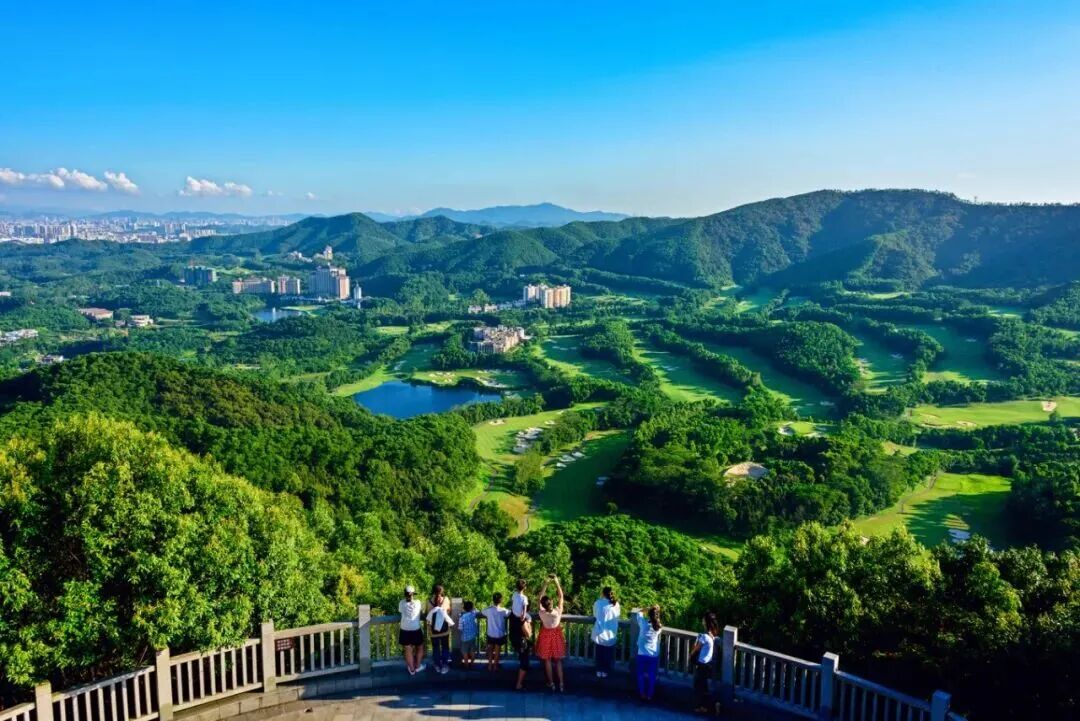 清风台是公园的观景平台之一,周围群山连绵,绿树成荫,自然景色十分优美。登上清风台,能近观世界第一大规模的高尔夫球场和森林公园的崇山峻岭,远眺深圳观澜城市样貌,是公园又一登高望远、休闲健身的好去处。