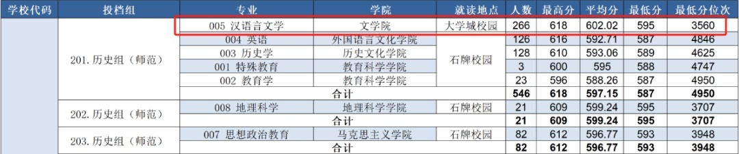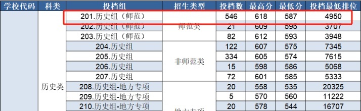 考生要注意,分专业分数线高于或等于专业组的投档分数线,例如:某历史类考生2024年考了588分,排位4838,在填报志愿时选择了华南师范大学“历史组(师范)”专业组的005汉语言文学专业,不服从调剂。2024年华南师范大学“历史组(师范)”专业组录取最低分数线是587分,投档最低排位是4950,但汉语言文学专业的录取线是595分,最低分位次是3560,由于选择不服从调剂,该考生被退档,不被该专业录取,只能在本科批补录时寻找机会。