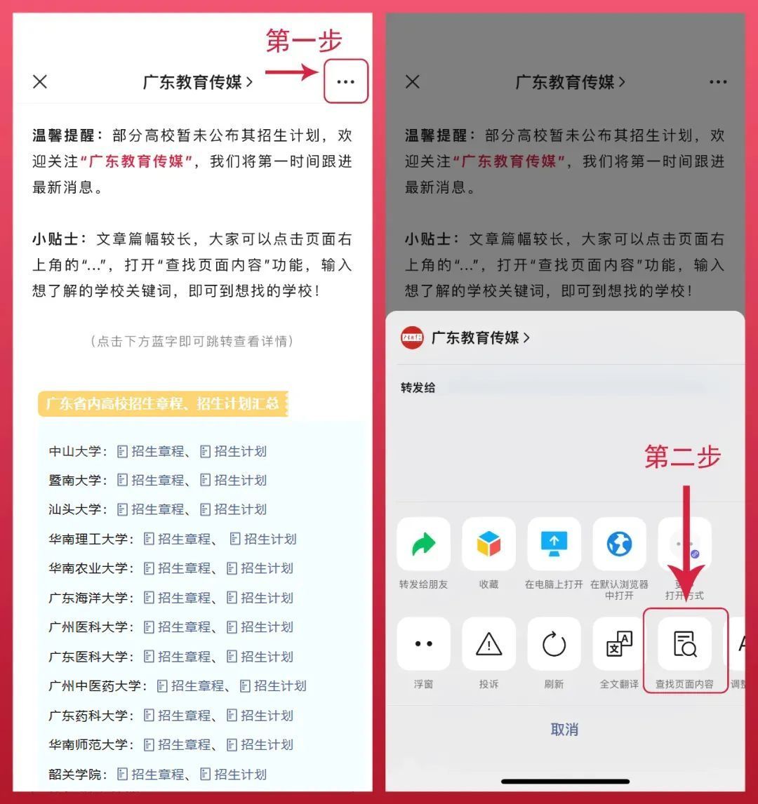 文章篇幅较长,大家使用微信的搜索功能直接定位到目标学校,点击文字链接即可获取。