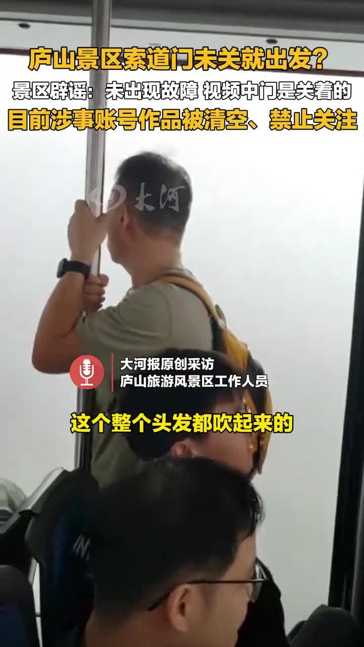 近日,有网友发视频称,10月4日庐山景区索道车厢门未关闭就出发。对此,庐山风景区工作人员回应记者:视频不属实,车厢门是关闭状态,也未收到任何故障信息。记者注意到,目前涉事账号作品已被清空,并禁止关注。>">详情>>