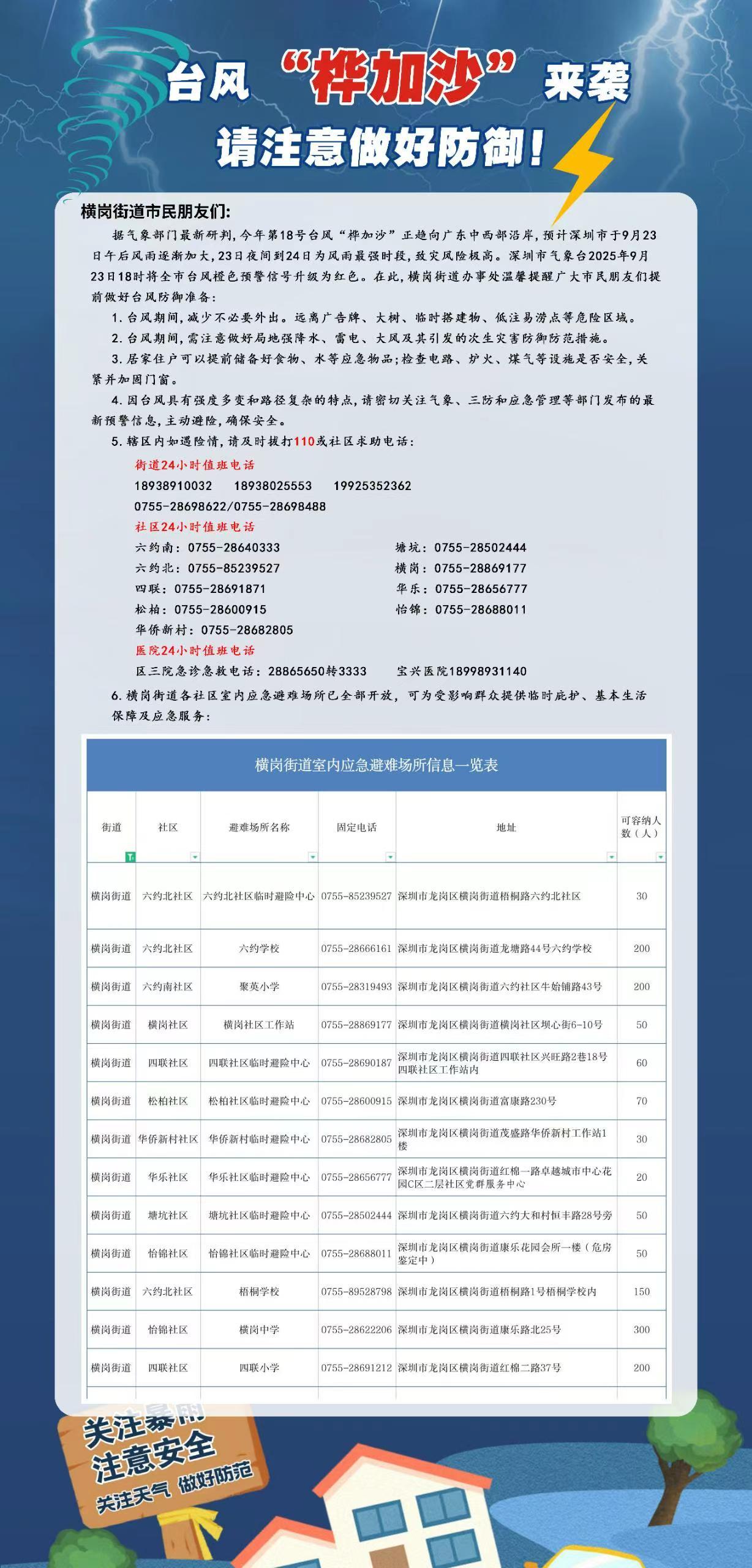 台风来临前夕,横岗街道各个社区通过“虚拟社区”“精彩活动”板块,转发省委组织部《致全省各级党组织和广大党员的倡议书》,动员组织277名党员干部24小时应急响应,台风前走访探视弱势群体409人;在“共享空间”板块上线开放应急避难安置点13个,临时安置群众155人。