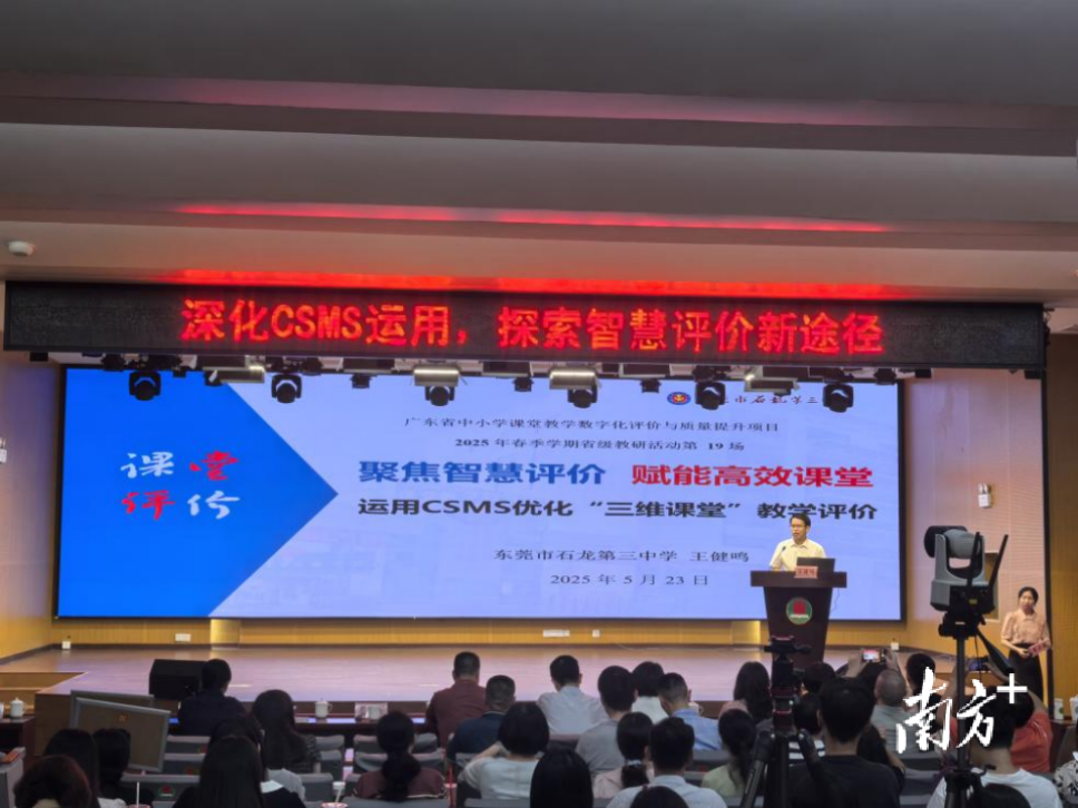 走进东莞市石龙第三中学(下称“石龙三中”),一股数字化的热潮扑面而来。2022年石龙三中被广东省教育研究院评为第一批“5G+智慧教育”试点校;2024年再次获评广东省中小学课堂教学数字化评价与质量提升项目学校;在学校副校长龙北渠的带领下,学校骨干教师深入研究基于数字化的CSMS平台,借助平台的大数据处理功能进行课堂教学评价。值得一提的是,2025年5月,石龙三中教研处副主任王健鸣代表学校参加由广东省教育研究院主办的“广东省中小学课堂教学数字化评价与质量提升项目”省级教研活动,并在活动中作了《运用CSMS优化“三维课堂”教学评价》的主题分享,得到与会专家和老师们的一致好评。详情>>