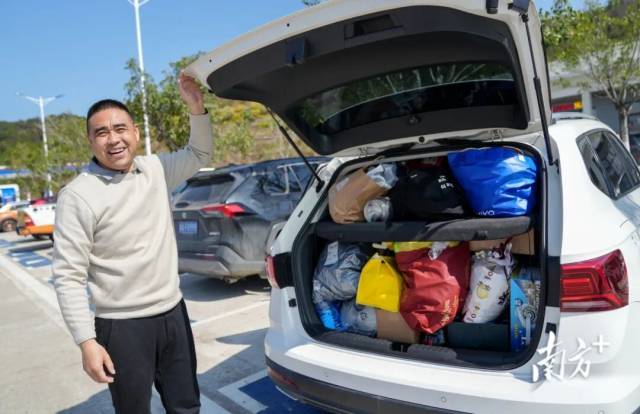 在东莞工作的李先生,把后备厢变成了“移动小厨房”:苏泊尔高压锅、珠江牌燃气灶、新会陈皮、丝苗米……他要带着这些心意,自驾一天一夜回河南老家。