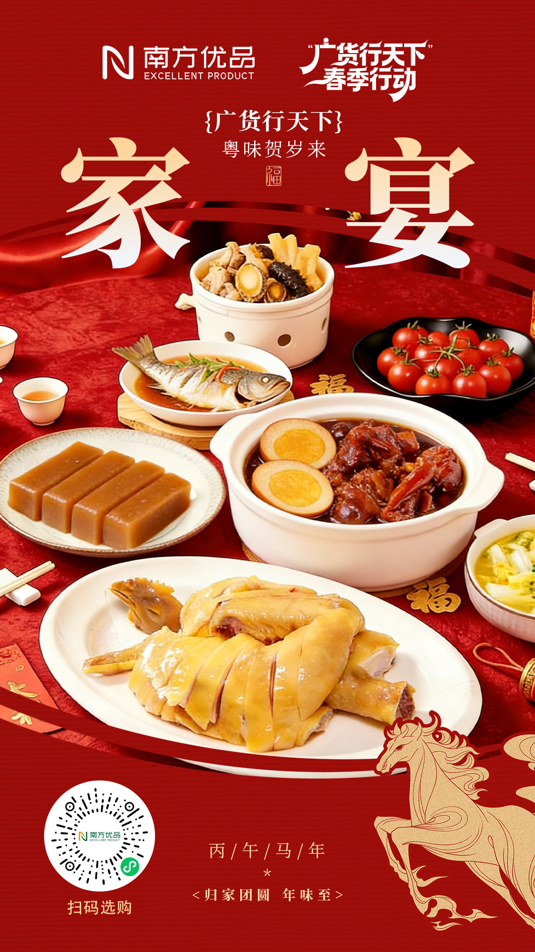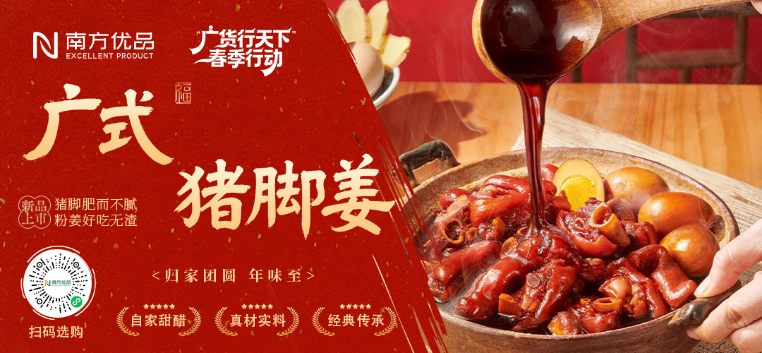 家宴,是广府人心中最地道的年味。盆菜纳百福,年鱼寓有余,鸡鸣呈祥瑞,姜醋暖人意……每一道佳肴不仅蕴含着美好的祝福,更承载着围炉团聚的温情。本期,南方优品《广货行天下》专栏,为您呈现一场色香味俱全的“广府家宴”,与您一同品丰馔、享团圆、纳祥瑞,在传承的滋味里,共酿一个温暖幸福的中国年。
