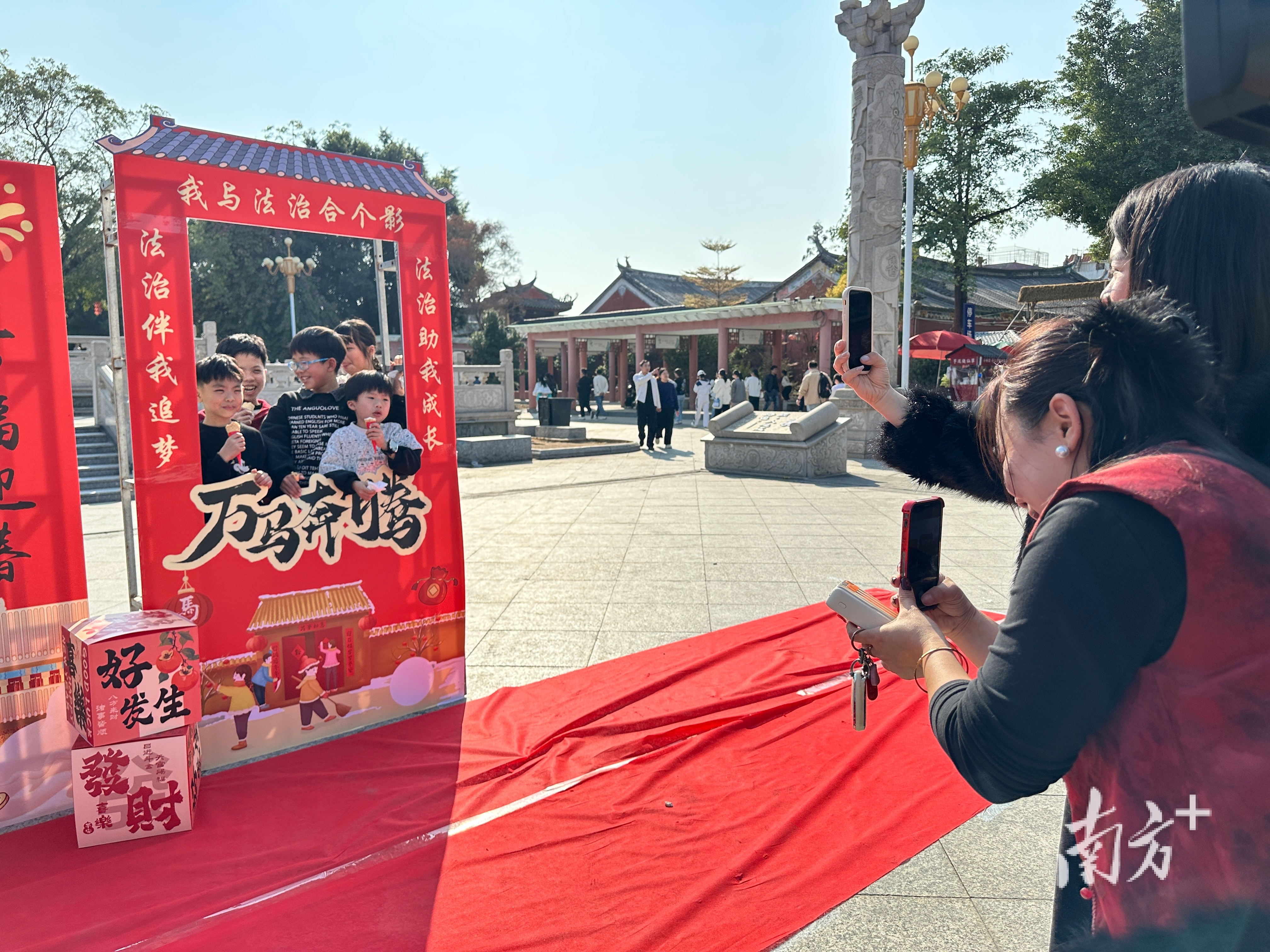 “我与法治合个影”打卡区前,印有法润万家、 平安相伴等标语的春节主题背景板吸引了众多群众拍照留念,大家纷纷分享至社交媒体,让法治理念在线上线下广泛传播。浓厚的节日氛围与法治气息相互交融,构成一道独特的新春风景线。