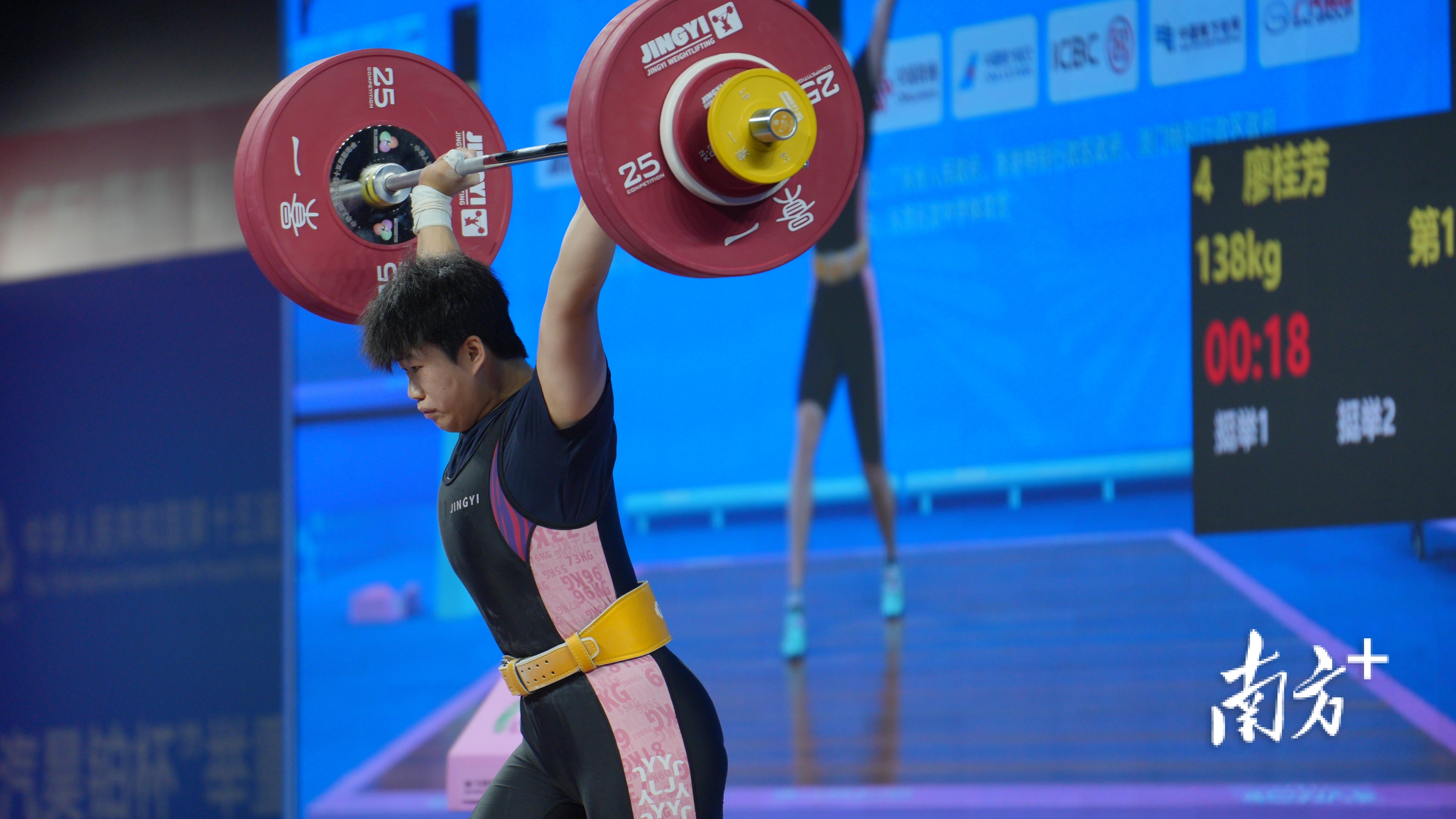 11月13日,十五运会举重赛事进入第四日。在女子76公斤级决赛上,上届全运会亚军、两届世锦赛冠军、抓举和总成绩两项世界纪录保持者——福建队廖桂芳以碾压性优势夺冠,并以158公斤的挺举成绩创全国成年挺举纪录,超亚洲成年挺举纪录、世界成年挺举纪录。