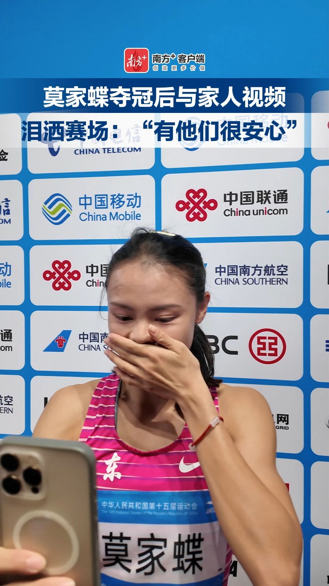 莫家蝶夺冠后与家人视频泪洒赛场:“有他们很安心”