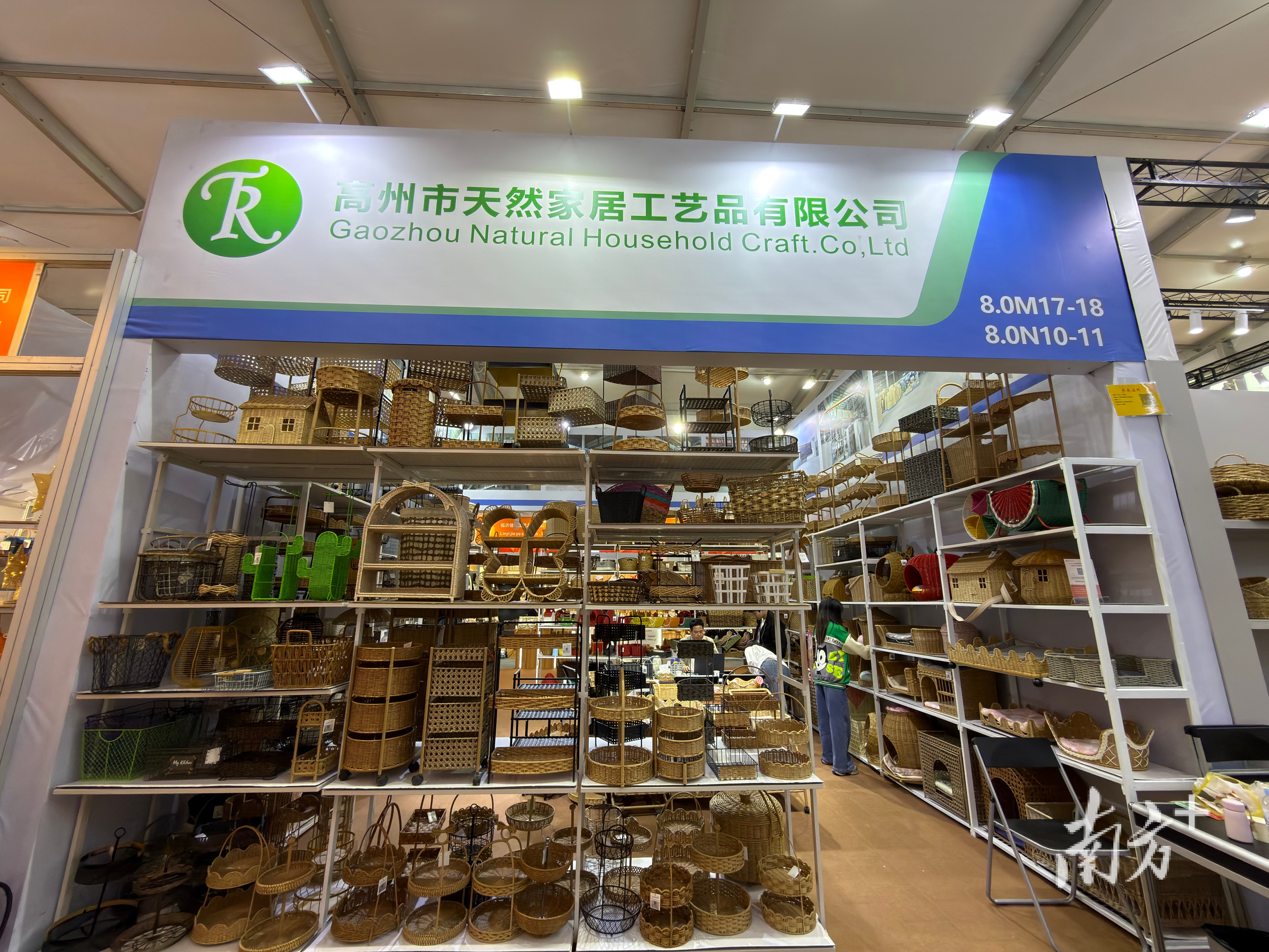 同样来自茂名的高州市天然家居工艺品有限公司则是参展广交会近十年的“老朋友”。展位负责人周云飞说,公司主打中高端手工藤编及仿藤产品,主要向Costco等高端商超供货,“一位土耳其客户对我们的仿藤材质多层收纳筐很感兴趣,当场准备采购8000多件,目前在进一步协商价格”。