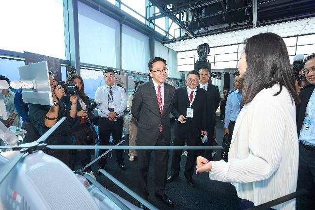 开幕典礼设置创科展览专区,近50家入驻企业集中展示具代表性的技术成果,涵盖不同战略性创科企业。展品包括双足机器人、氢动力无人机、OCT 医疗设备及电子墨水显示技术。专区更设置与现场嘉宾互动的演示,充分展现中国科创企业的技术实力与创新潜能。