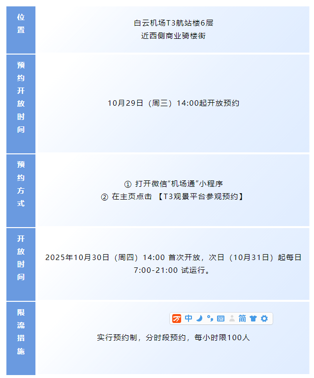 参观当日,请到场出示小程序预约二维码(截图无效)从观景平台入口有序进入。