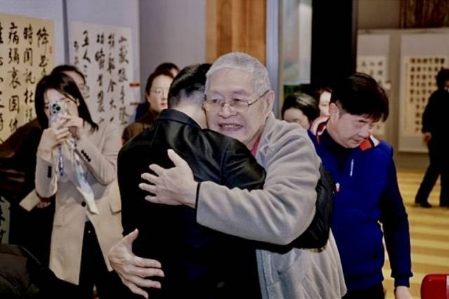 台湾抗日志士林正亨之子林义旻与台青相拥。