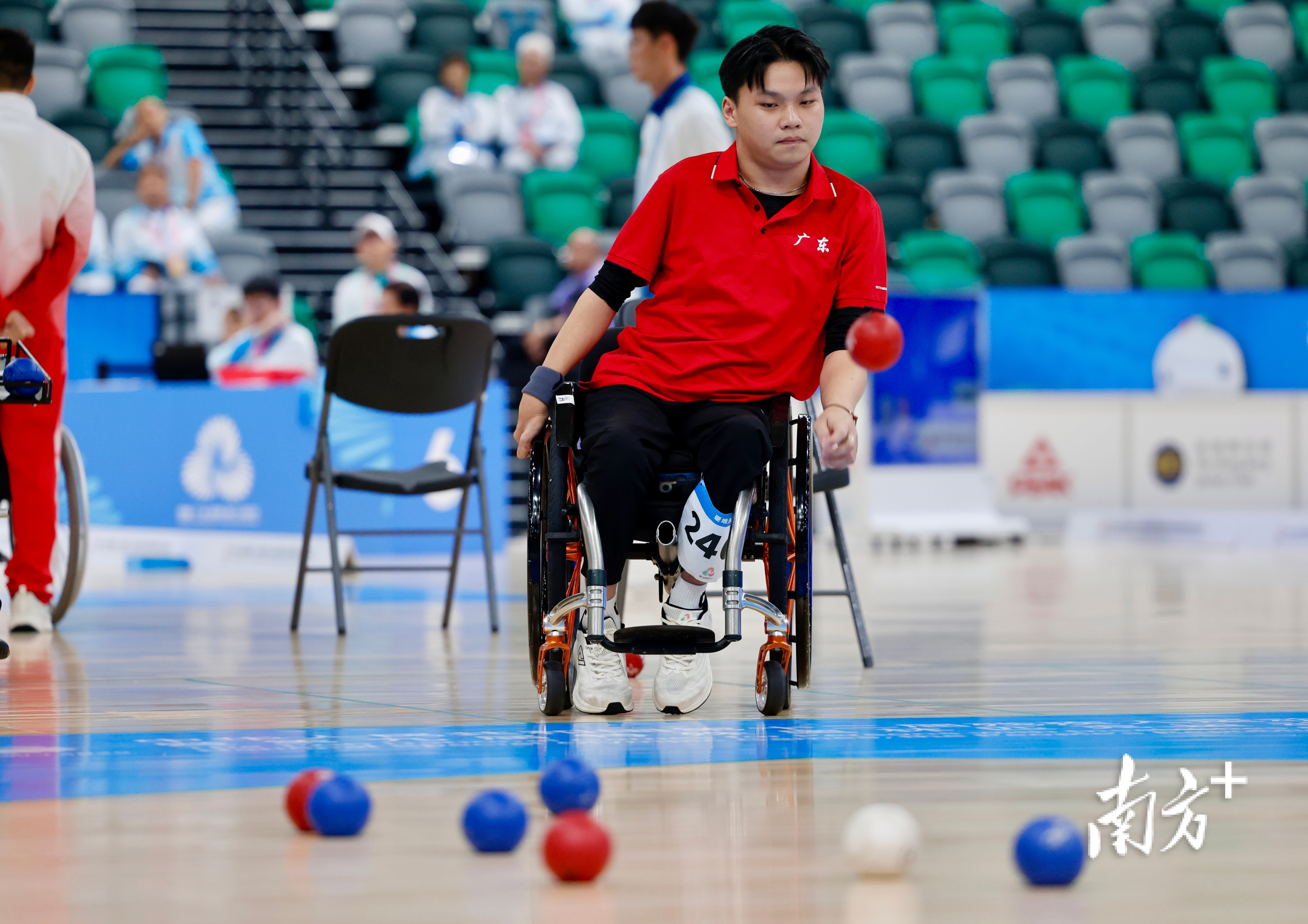 12月12日下午,残特奥会硬地滚球男子个人BC4决赛中,来自广东一团的运动员广越想收获一枚宝贵的银牌。这位23岁的选手,用一次次精准的投掷,不仅为自己赢得了荣誉与尊重,同时划出了一条从受助到助人的人生弧线。