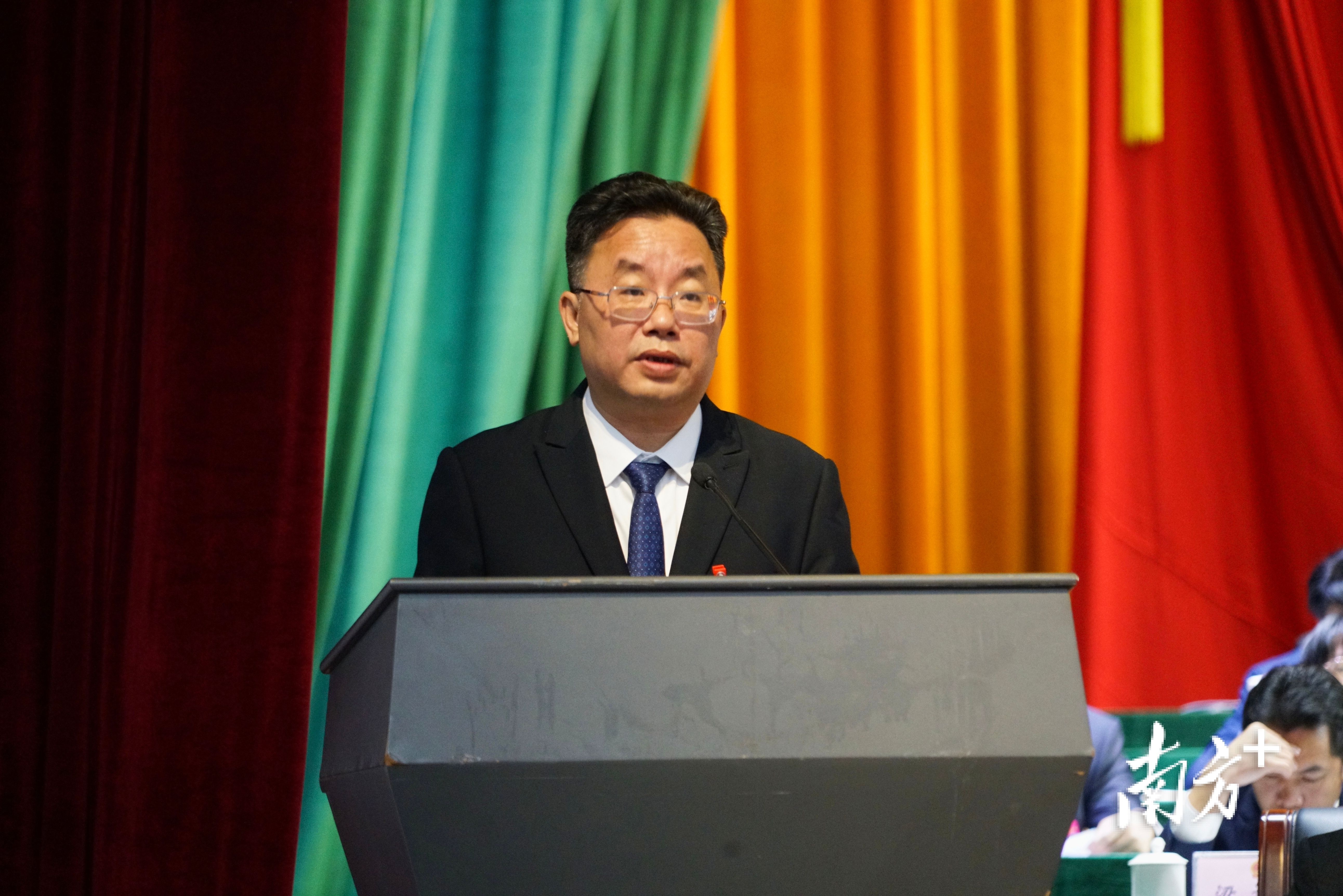 茂名市电白区委副书记、代区长李龙飞向大会作电白区政府工作报告。