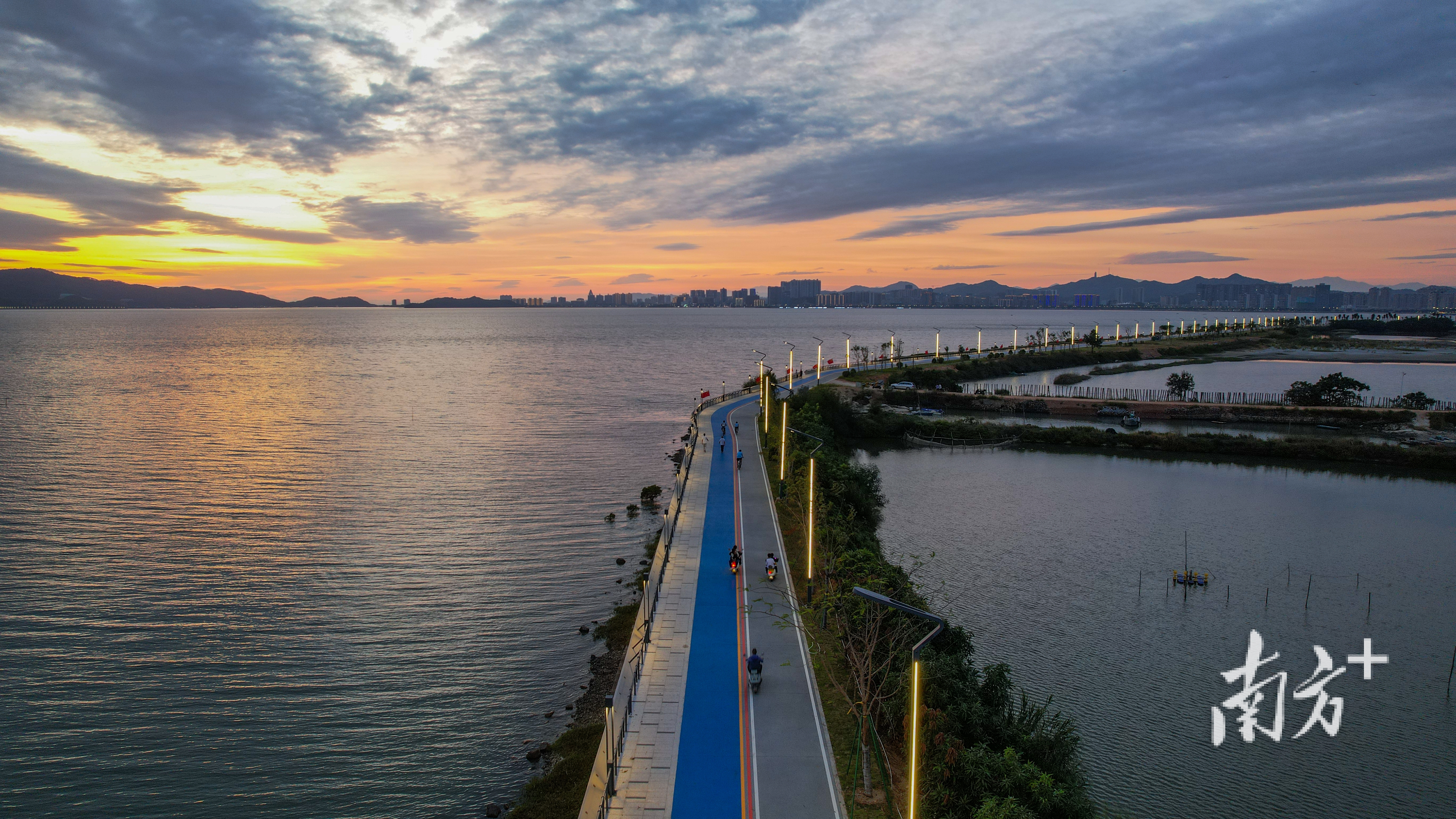 在生态环境改善的基础上,当地继续挖掘品清湖“山、海、湖、城”自然禀赋,建成北岸碧道和南岸滨海碧带,串联景观节点,激活水经济。21.3公里的品清湖北岸万里碧道串联起沿岸的善美广场、沙滩公园、凤山妈祖广场等,已成为居民休闲的好去处。新建的南岸碧带示范工程进一步拓展亲海空间,已成为市民游客新的打卡点。