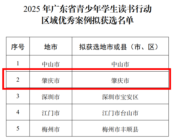 同时,肇庆还被推选参加教育部2025年全国青少年学生读书行动区域案例征集活动。