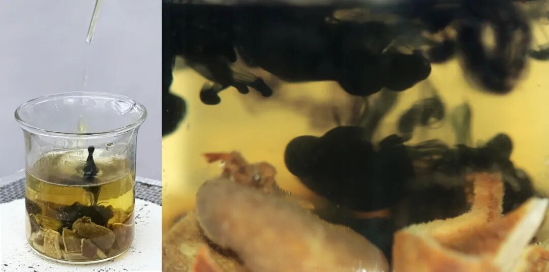 除了蛋白质,单宁在遇到铁离子时也会发生奇妙的反应。五倍子单宁在遇到铁离子的瞬间,会形成一种名为鞣酸铁的黑色物质,这种黑色物质性质稳定,不仅可以用作蓝黑墨水,还是一种良好的天然染剂,古今都常用于染发或是染布。