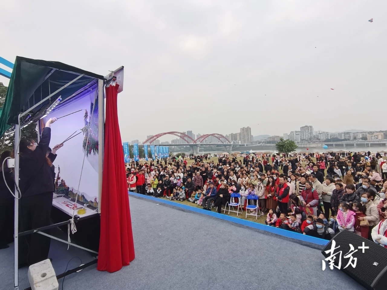 12月6日,在嘉陵区嘉陵江大草原,经典剧目《哪吒闹海》选段精彩上演,演员们凭借精湛操纵技艺,让哪吒的侠义形象在光影间跃然幕上,细腻传神的表演赢得现场观众阵阵掌声。