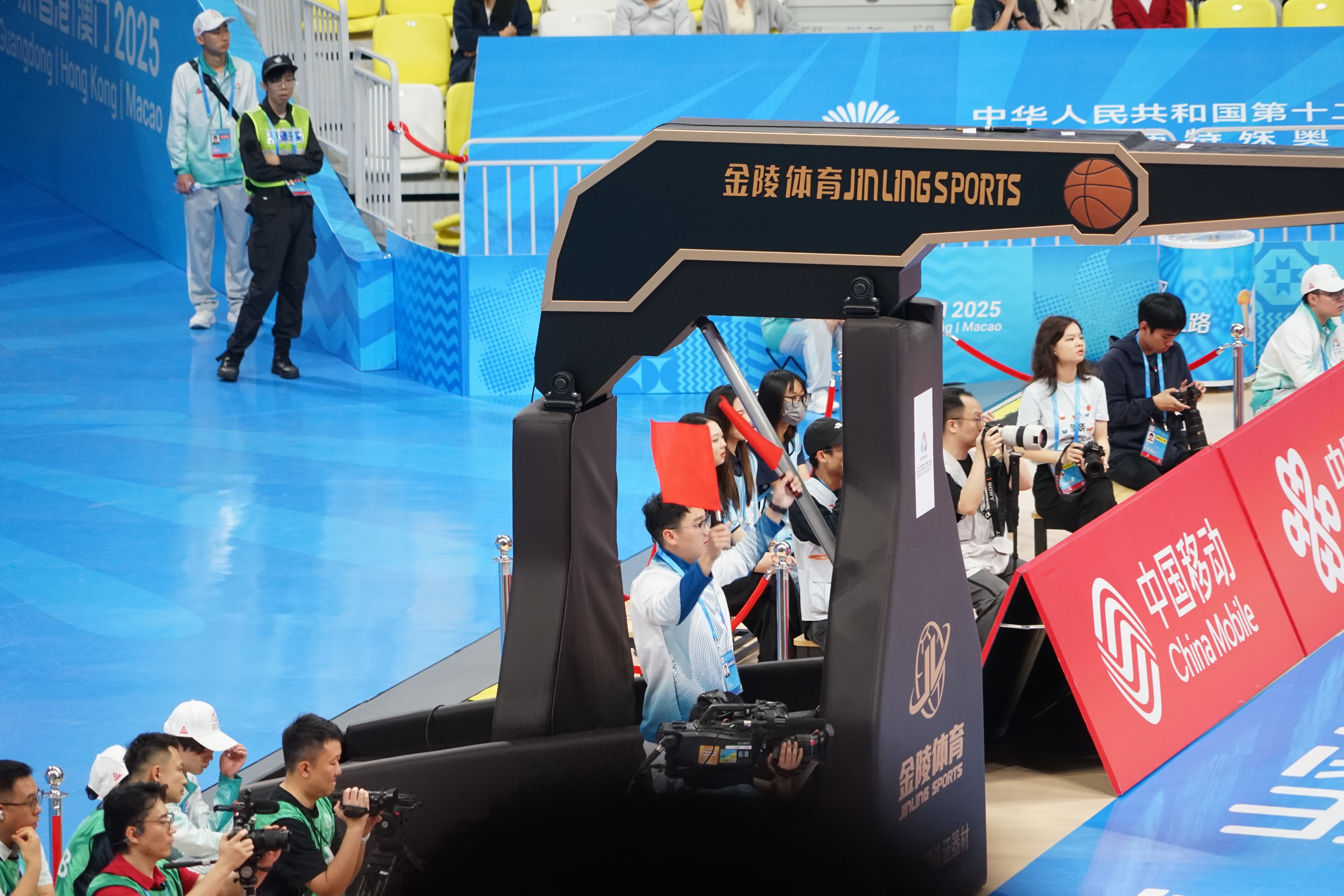 据裁判员代表闫育东介绍,聋人篮球在竞赛规则方面与常规篮球比赛并无太大区别,但结合运动员听不见声音这一特点,佛山赛区的赛场在两边篮球架下方增设了旗手,随着裁判员指令挥动两面小红旗,及时向聋人运动员传达信息。